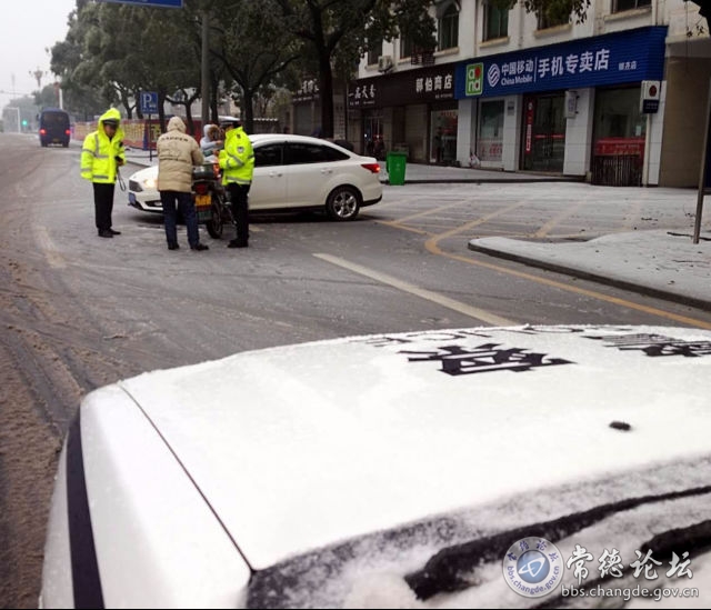[其他综合]雪季守路人,保安全,保畅通,常德交警,寒冬里呵护车内温暖的您。