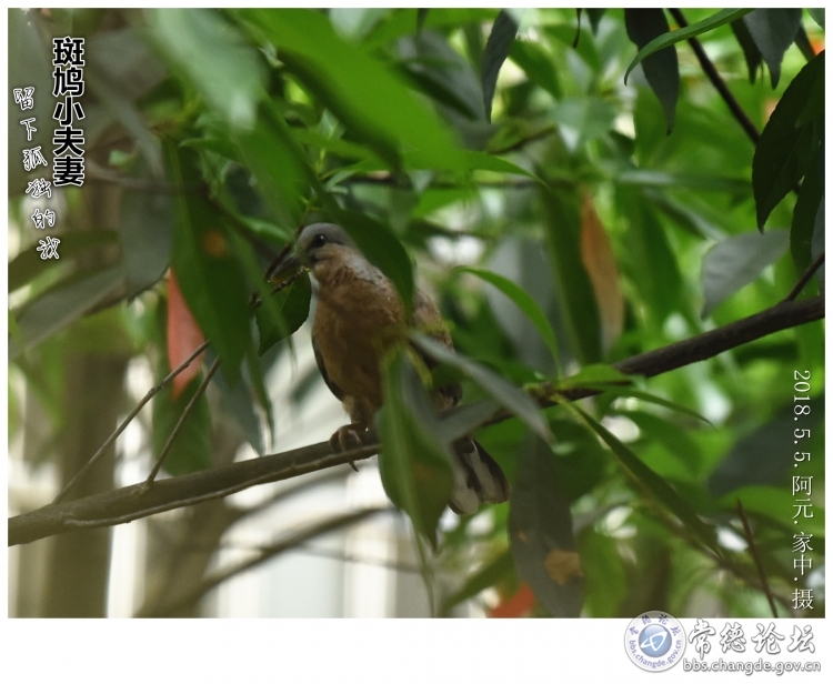 斑鸠为传统吉祥鸟,象征情意深厚,真诚永恒;寓意天赋吉运富贵永久;民间常用“鹊笑鸠舞”一词作为喜庆的祝辞。 "斑鸠中的恩爱小夫妻,是不是商议春游穿紫河,该去那儿玩,还是秀恩爱呢?" 斑鸠公;老婆,这么暖和、安谧我们欢欢? 斑鸠婆;你就知道玩,再过些日子带着我们的孩子一起玩多好,自由天地,任鸟飞翔,一家游穿紫河多热闹! 斑鸠公......???好吧!老婆大人,都听你的。 斑鸠婆;这就对了,去搭窝吧!我先在这看看常德穿紫河风景!!! |