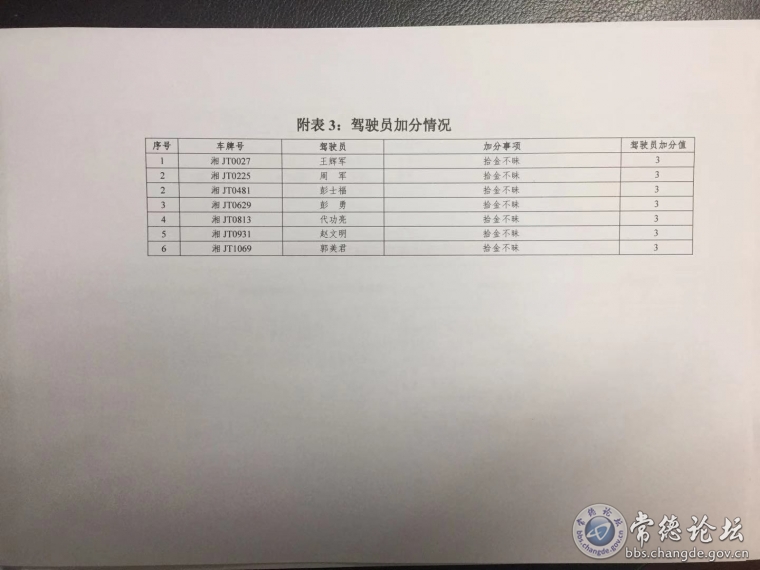 给予有拾金不昧行为6驾驶员加分奖励,具体加分情况见附表3