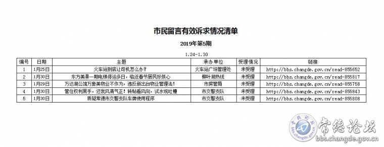 市民留言网上诉求快速处理情况通报(2019年第5期)