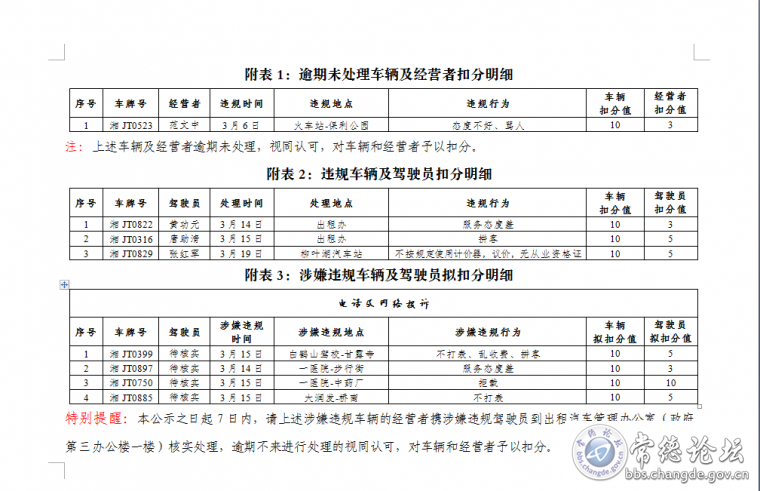 辆涉嫌违规车辆及驾驶员逾期未处理,视同认可,对车辆和经营者予以扣分,详见附表