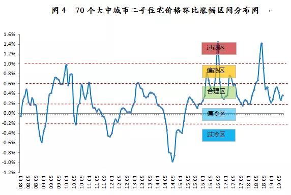 70城房价指数环比涨幅从2017年5至2018年4月,除17年10月和18年1月触及偏冷区外,均停留在“合理”区间内。2018年5月后环比涨幅进入 “偏热”区间,7月和8月进入过热区间,9月重新回到“偏热”区间后快速回落,10月至2019年7月均处于合理区间内。2019年5月至7月密集出台了一系列房地产调控政策,包括对房企融资端的收紧,对部分热点城市的预警,房贷利率的上调等。7月30日中央政治局会议确立了“不将房地产作为短期刺激经济的手段”的定位,预计未来几个月70城房价将降温,涨幅或将处于合理区间及以下。