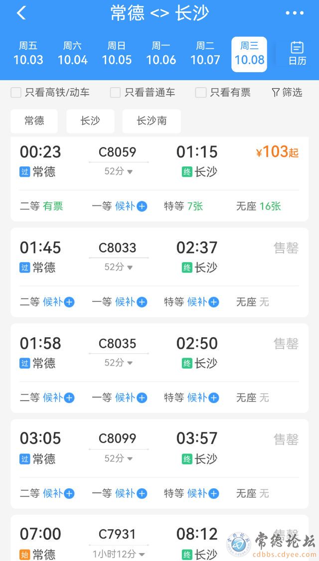 C8053常德→长沙 C8054/5/6/9/60/8099/8100长沙~张家界西 G4597/8重庆北~长沙 G4313/4重庆东~常德 G4407/8常德~泸州 C7951/2 长沙~龙山北 C7953/4 长沙~张家界西 K6551/2 常德~东莞东 K6555/6 常德~长沙 K6626 邵阳→常德 K6561/2 广州白云~石门县北 其中,高铁以夜间“红眼”高铁为主,普速列车的信息仅供参考,稍后将会上线12306软件。具体情况以12306为准。 |