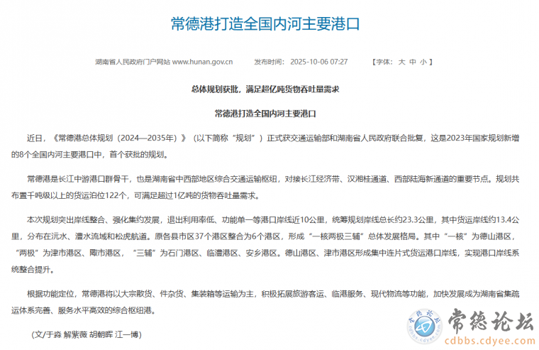 [新闻传递]《常德港总体规划(2024—2035年)》正式获批 [已回复]