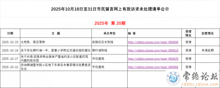 [每日简报]常德《市民留言》网上有效诉求未处理清单公示