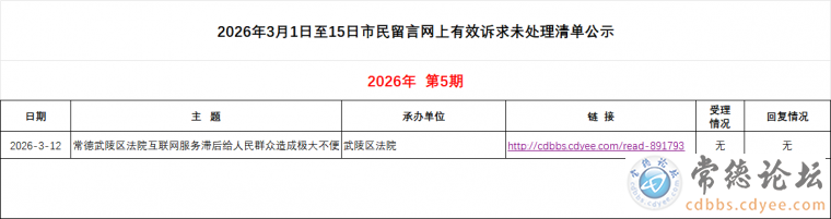 常德《市民留言》网上有效诉求未处理清单公示